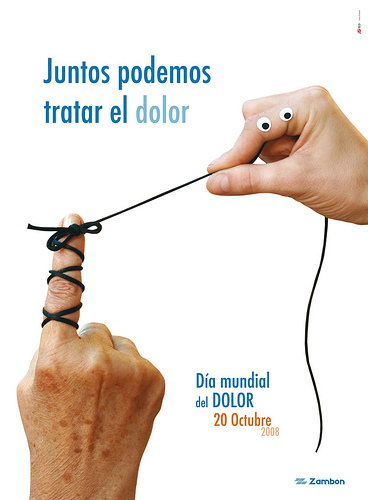Aunque el próximo Día Mundial del Dolor no sea hasta el 20 de octubre, os ponemos el original cartel que será distribuido en más de 50.000 establecimientos. El objetivo es concienciar a la población general y provocar empatía, para ponernos en el lugar de aquellos que sufren dolor. La iniciativa ha sido elaborada por el laboratorio Zambon y el Istituto Europeo di Design.