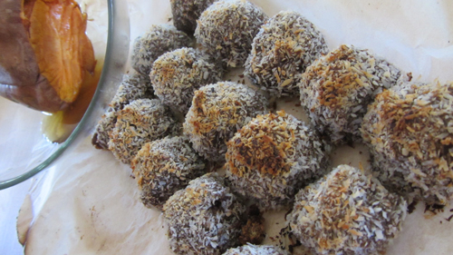 Rebozar. Pasamos unas bolas por coco rallado.