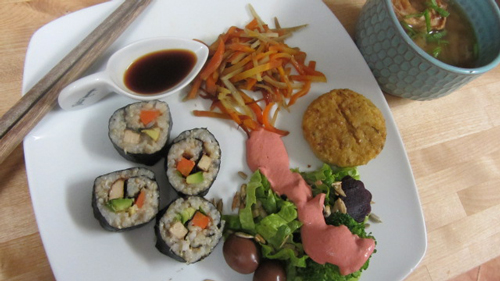 Si hablamos de nutrientes, el menú debe tener: hidratos de carbono, siempre integral, con prioridad del cereal en grano, después la pasta y como última opción el pan; proteínas –legumbres o tofu tempe, seitán…- y evitar las de origen animal, aunque sí está recomendado el pescado, preferiblemente blanco, pequeño y salvaje y el marisco-; verduras y preferiblemente de temporada e intentando usar la máxima totalidad y sin pelar. Se pueden tomar crudas, en ensalada, escaldadas, en wok, estofadas, al horno, en tempura…; y semillas y frutos secos (sésamo, pipas, almendras….).