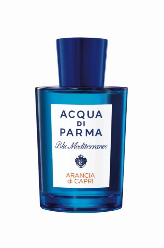 Arancia di Capri de Blu Mediterraneo. Capri bajo la forma esférica de una naranja nacida en el mediterráneo que se mezcla con la mandarina y el limón azotados por la brisa fresca del mar. El caramelo le pone un poco de azúcar para restar efervescencia y acidez a la fragancia que pasea por un jardín al borde del mar.