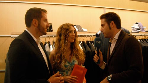 La pareja, que acababa de llegar de Madrid, iba vestida con trajes de la colección de fiesta del diseñador gallego Antonio Pernas. Estuve hablando un rato con ellos hasta que su manager los arrastró hacia un colega de la tele y es que TVE pesa mucho. Pero tanto Blanca como Borja siguieron hablando conmigo hasta que acabé mi pequeña entrevista mientras la manager se ponía cada vez más histérica y me lanzaba miradas asesinas.
